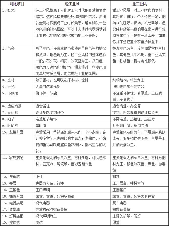 破旧的工厂改造,就能成为重工业风的最佳选择地。因为工业风是指从工厂改装的家庭室内设计,房子的本身要具有工厂的高天花板,大的落地窗以及巨大的无用空间。对于这三点都没有的话是很难做成重工业风的。黑白灰是最平稳的颜色搭配,在工业风的环境下很能衬托其他物件,起到了很好的衬托作用。其搭配方式有很多样,灰白地墙和白色点缀的搭配在神秘中透着一点灵动优雅,工业风的少了些层次感的变化,但明暗对比更佳分明。